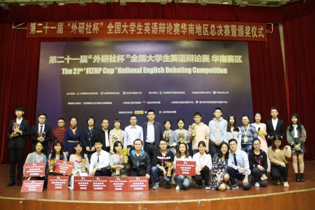 3月23日至25日,2018年第二十一届“外研社杯”全国大学生英语辩论赛华南赛区决赛在华南农业大学落下帷幕。自广东省、广西壮族自治区、福建省、贵州省、海南省、江西省、湖南省、湖北省、云南省等地的98所院校的队伍,经过五轮循环赛的角逐以及最后一场辩题为“This House Would implement Good Samarition Laws”的四强辩论,最终,中山大学代表队成功摘得桂冠,华南农业大学代表队获得亚军,华南科技大学代表队与湖北师范大学代表队获得季军。他们将参加5月底在北京举办的全国总决赛。