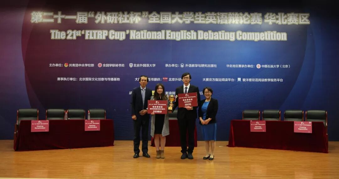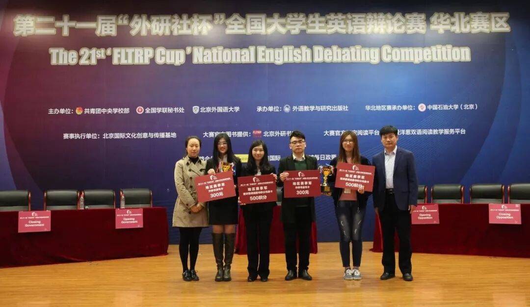 4月13日至4月15日,2018年第二十一届“外研社杯”全国大学生英语辩论赛华北赛区决赛在中国石油大学(北京)落下帷幕。来自北京、天津、河北、辽宁、吉林、黑龙江的87所院校的队伍,经过五轮循环赛的角逐以及最后一场辩题为“我们应否认 '来生' 的存在”的四强辩论。最终,北京航空航天大学代表队成功摘得桂冠,中国石油大学(北京)代表队获得亚军,中国政法大学代表队与大连理工大学代表队获得季军。他们将与另外18所院校一起参加5月底在北京举办的全国总决赛。