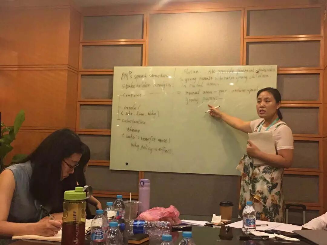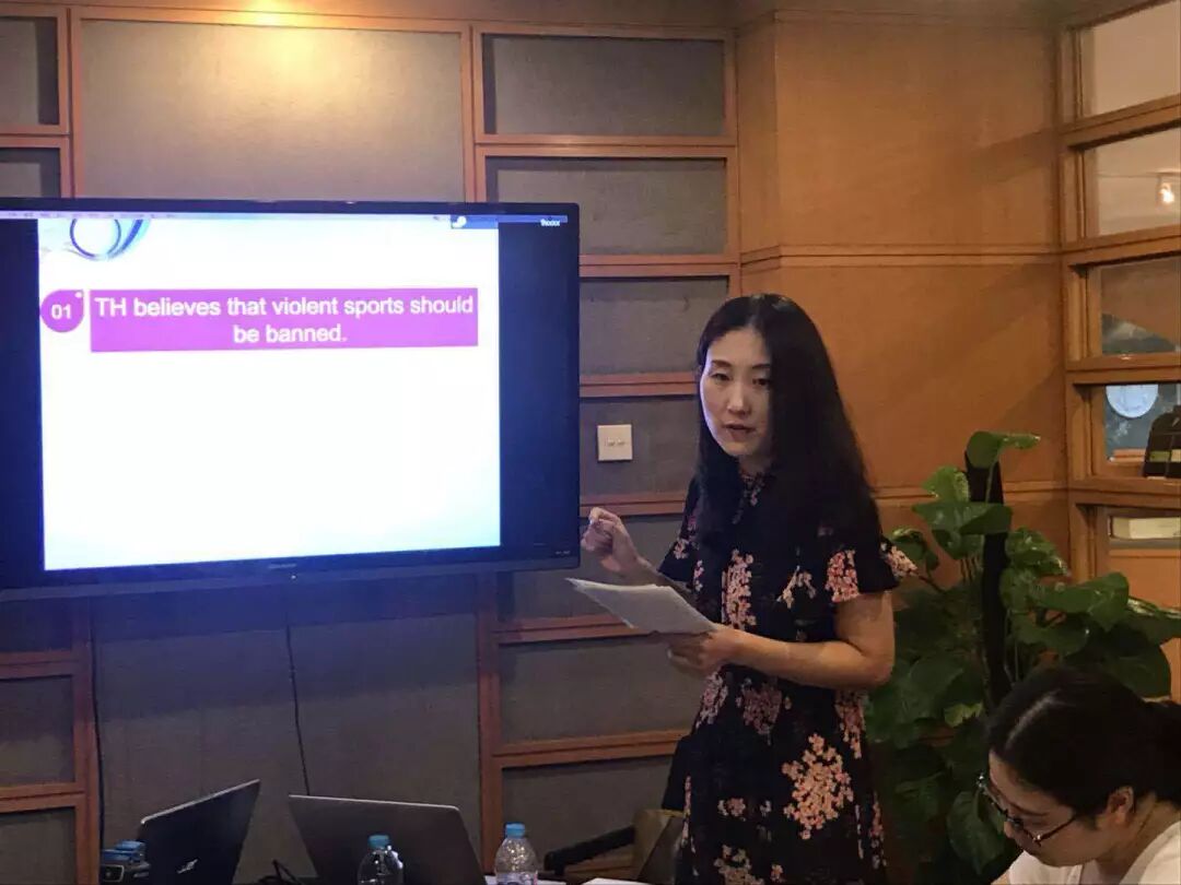 #廿一少年,鲜衣怒马# “外研社杯”全国大学生英语辩论赛 在第二十一届结束后 终于完成了惠及更多学生的事 2018外研社英语思辨教学夏季研修班 这样 就可以迎接“英辩尔尔”了 (夏季研修班集体合影) 感谢各位老师们不畏酷暑,在灼烧的8月来到北京参加研修班。本可以在家里过暑假,自由安排自己的时间,但是却选择来北京“受虐”。 一直都知道辩论是一个需要体能支持的运动,是因为不管裁比赛还是在研修班,都要有大量的工作要做。研修班的老师们需要每天听8小时课,设计课程,做阅读,完成考核。 (老师们的学习材料) 作为活动的主办方,我们有幸看到作为辩手和同学平时看不到的老师们的一面。老师们的学习状态真的非常高,课上课下会有不同的讨论和全情参与。同时,老师们更知道教学时存在的授课细节,所以会问非常直观的问题。这样才真的是“教学相长”,实在让人佩服。 (课后的讨论) 学以致用,一直都是教育者坚持的原则。所以,在最后一天,每位老师都精心准备了说课的内容,把自己想要讲的课程在考核的过程中呈现出来。 老师们的用心真的让人感动。精致的PPT,漂亮的板书,清晰的逻辑和精彩的内容,都是我们想要在课堂上看到的。希望老师们在新学期,新赛季都可以把课程开起来,让更多的孩子受益。 << 滑动查看下一张图片 >> (各位老师说课考核中) 活动结束了,老师们带着要教授的课程和同行之间互相的鼓励与前行返程。从老师们朋友圈里留下的字,真的感受到了大家对研修班的认可。 也像很多老师说的,我们冬天见。 英辩廿一 · 思辨不止 21, Forever Debate 获取2018-2019新赛季活动, 点击⬇️
